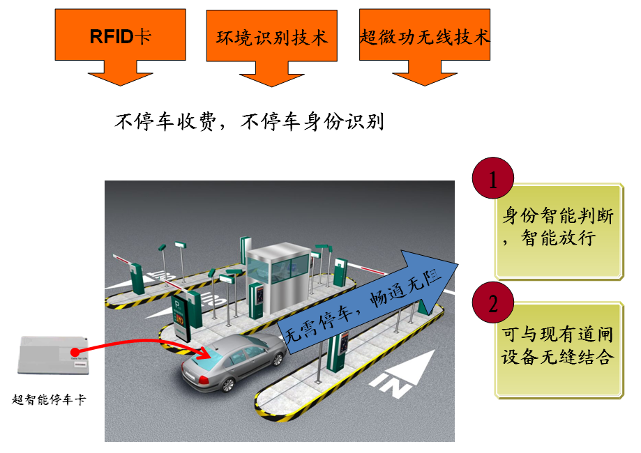 RFID具有不停車收費(fèi),抬桿,方便、快捷、上檔次。