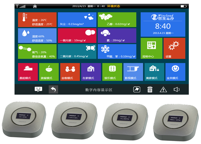 實(shí)時(shí)監(jiān)測(cè)顯示室內(nèi)總有機(jī)揮發(fā)物濃度、溫度、濕度、一氧化碳、二氧化碳、氧氣、PM2.5、煙霧、氨氣、甲醛等。通過(guò)以上參數(shù)可以了解到室內(nèi)的空氣質(zhì)量和室外的控制質(zhì)量,根據(jù)參數(shù)可輔助去室外有沒(méi)有必要戴口罩等防護(hù)措施